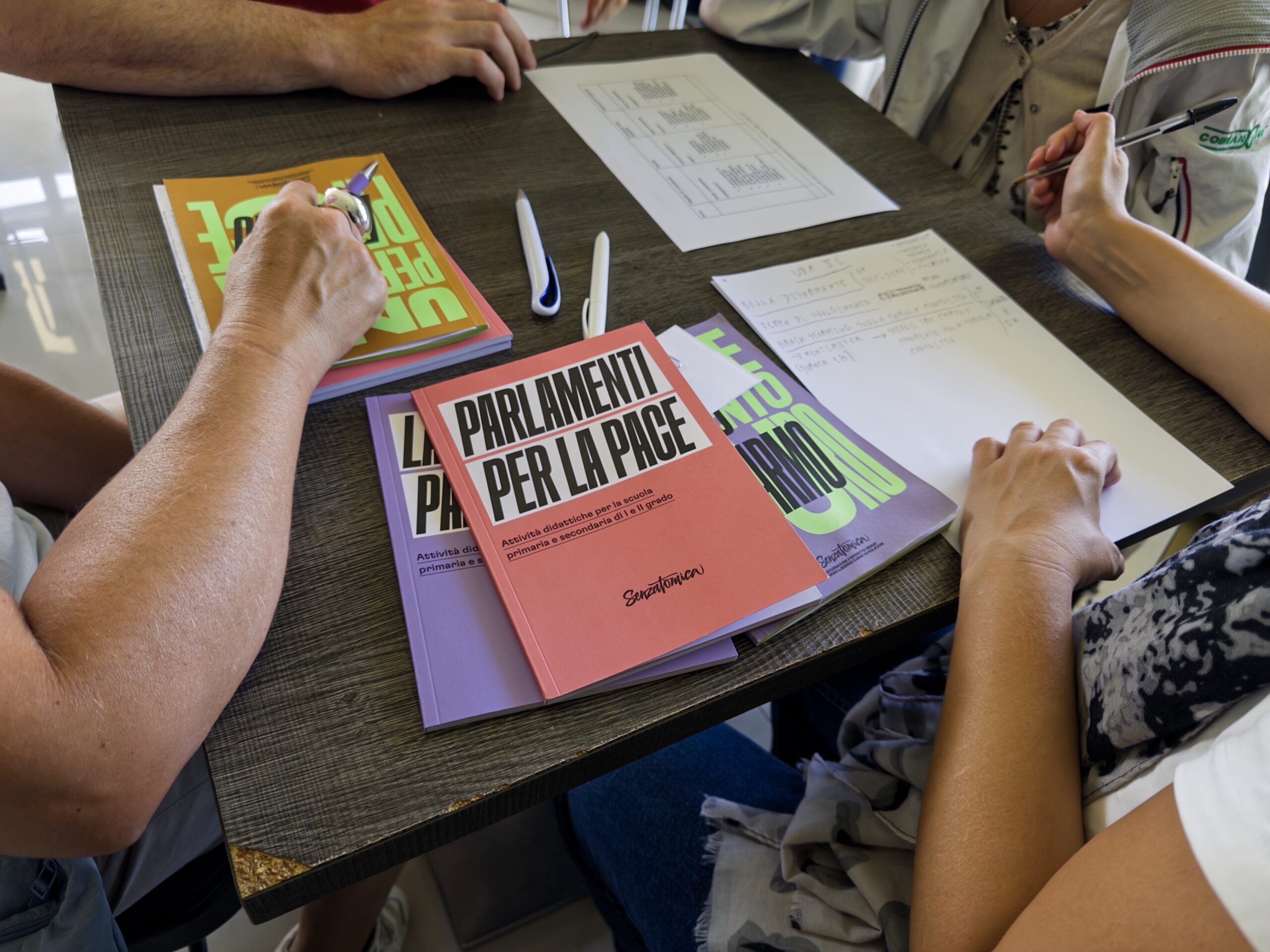Il terzo e ultimo giorno di corso sono stati presentati i materiali didattici ideati dall’Ufficio Senzatomica, attraverso i quali è possibile esplorare strumenti e metodologie improntate sulla trasformazione dello spirito umano da utilizzare nelle classi. Successivamente, gli insegnanti hanno partecipato agli ultimi lavori di gruppo con Maria Chiara Pettenati e Sara Martinelli. Infine, alcuni volontari tra loro, sono stati protagonisti di una drammatizzazione teatrale, a cura della volontaria Maya Conedera, in cui si è simulato il loro ritorno in aula e la possibilità di proporre i contenuti di Senzatomica e le metodologie proposte.
