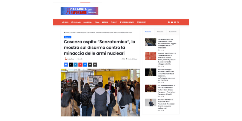 Leggi articolo completo: https://www.calabriareportage.it/cosenza-ospita-senzatomica-la-mostra-sul-disarmo-contro-la-minaccia-delle-armi-nucleari/